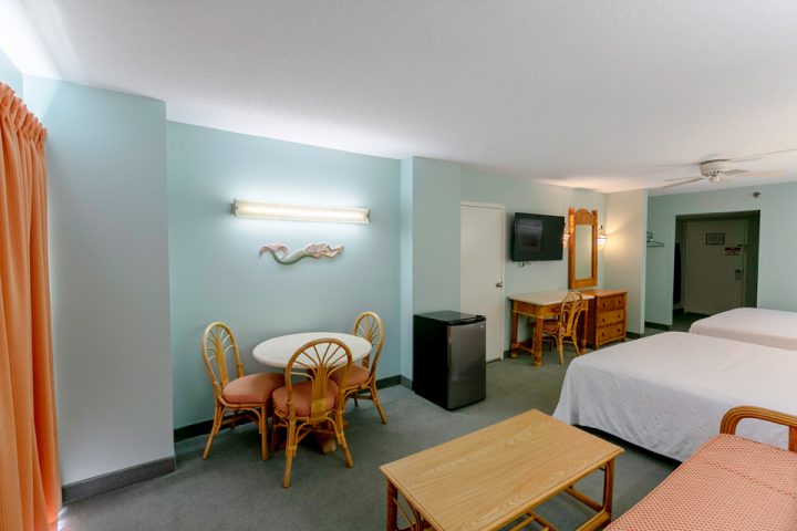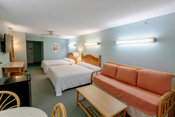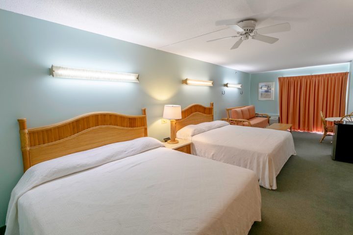 With a recommended occupancy of four, and the ability to sleep up to six, give yourself extra space on your vacation. Our king rooms come with two king-size beds and amenities such as a flat-screen TV, refrigerators, and a private balcony.